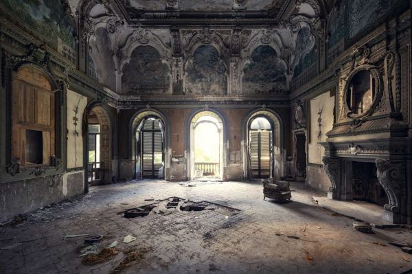 De prachtige open haard van een van de mooiste villa's in Italië. Waarom deze villa werd verlaten blijft tot op de dag van vandaag een mysterie. Helaas werd dit historische gebouw in 2023 het slachtoffer van een brand.
