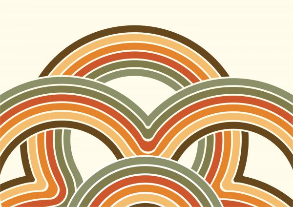 Vintage vormen in verschillende kleuren op fotobehang. Combineer dit fotobehang in huis en haal de jaren 70 terug.