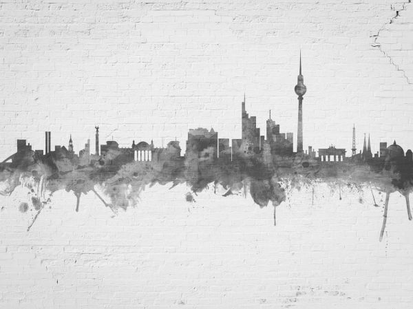 Een waterverf skyline van Berlijn in Urban stijl. De skyline is te bestellen met verschillende achtergronden.