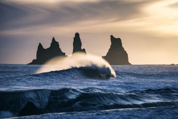 Volgens de legende waren deze grote basaltrotsen aan de zuidkust van IJsland ooit machtige trollen die versteend werden door de opkomende zon toen ze probeerden een schip aan land te trekken.