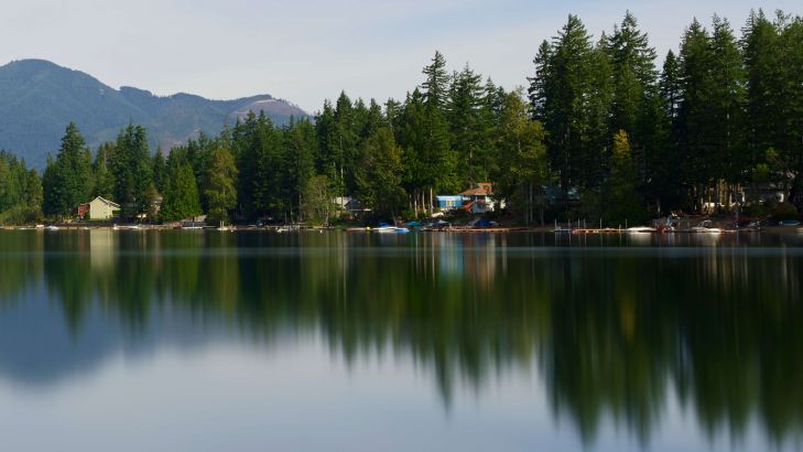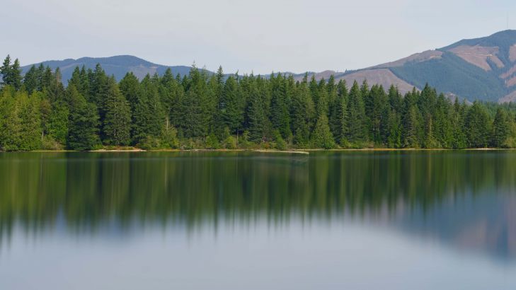 Prachtige landschapsfoto met in het meer een weerspiegeling van de bergen en lucht.