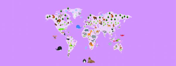 Leer de wereld en zijn dieren kennen met deze leuke en leerzame wereldkaart op behang.