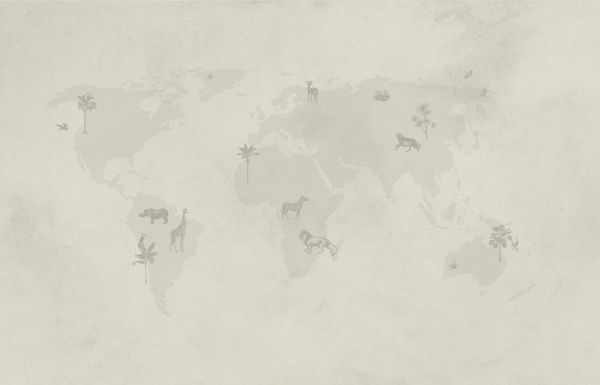 Wereldkaart sketch in het groen. Draait de wereld alleen maar om dieren? Op dit fotobehang wel. maak jouw kinderkamer compleet!