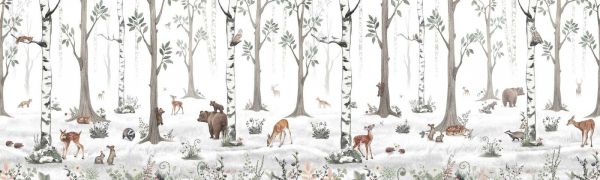 De patroonstijl is rijk maar luchtig, met veel open ruimte tussen de bomen en dieren. Dat maakt het ontwerp visueel toegankelijk en geschikt voor zowel grote als kleine ruimtes. Het neutrale kleurenschema zorgt voor een tijdloze uitstraling, die niet snel zal vervelen. Dit sfeervolle boslandschap nodigt uit om telkens opnieuw op ontdekkingstocht te gaan.