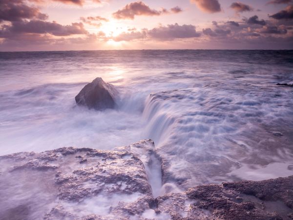 Fotobehang van wilde zee tijdens de zonsondergang. Combineer dit fotobehang in jouw woning voor nog meer sfeer.