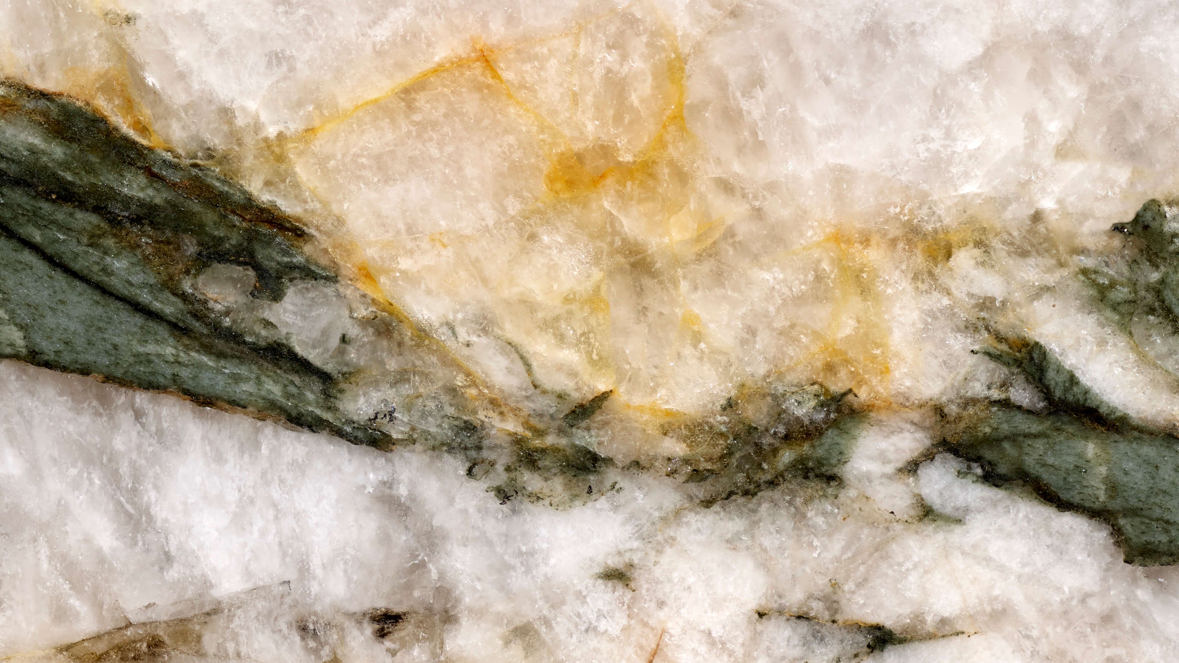 Wit marmer met groene elementen. Combineer dit fotobehang in huis voor nog meer sfeer.