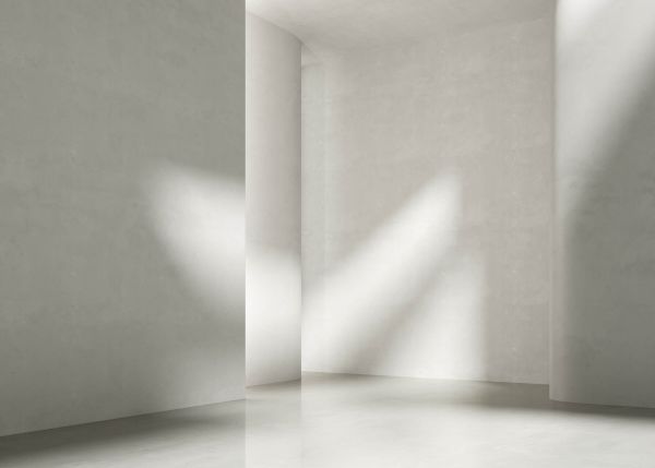 Een minimalistische afbeelding van een witte ruimte met lichtinval.