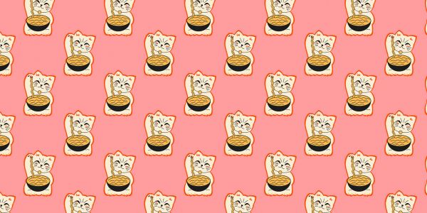 Witte kat met noedels patroon