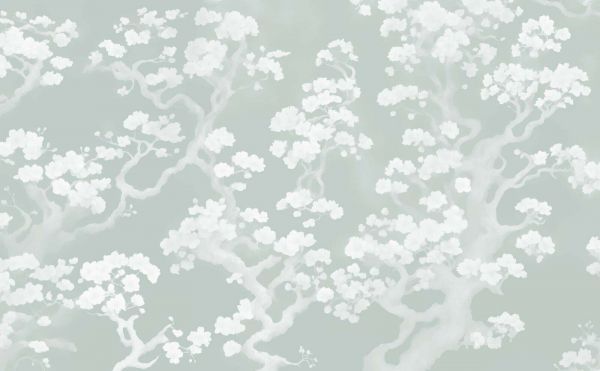 De Mint Green-versie van dit ontwerp brengt een speelse frisheid met zich mee. De bijna pastelkleurige achtergrond doet denken aan een lenteochtend, waarin de eerste zonnestralen het landschap zacht verlichten. De witte bloesems contrasteren op subtiele wijze met de mintgroene tint, en de lichtgrijze takken wikkelen zich elegant rond de bloemen. Het resultaat is een serene en tegelijk sprankelende wanddecoratie.