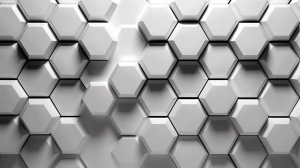 Dit meeslepende patroon van driedimensionale hexagonen in verschillende tinten zilver creëert een visueel betoverende textuur.