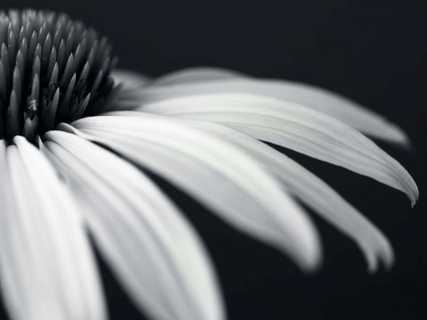 De zonnehoed bloem, of ook wel Echinacea, in het zwart-wit. Combineer deze close-up in jouw huis.