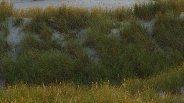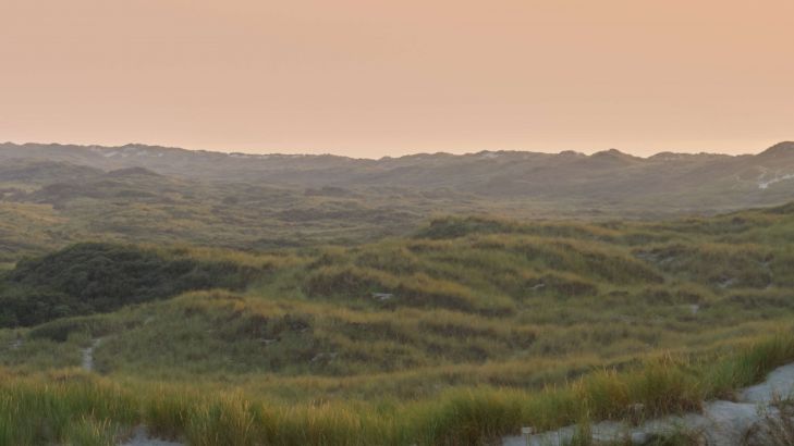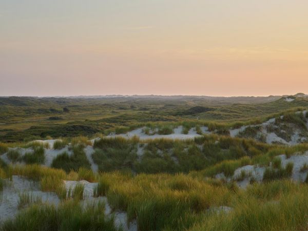 Zomerse zonsondergang in de duinen aan de Noordzee.