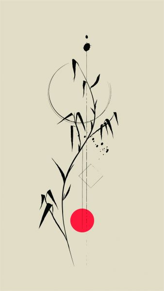 Een mooie illustratie van een zwarte bamboeplant op een beige achtergrond.